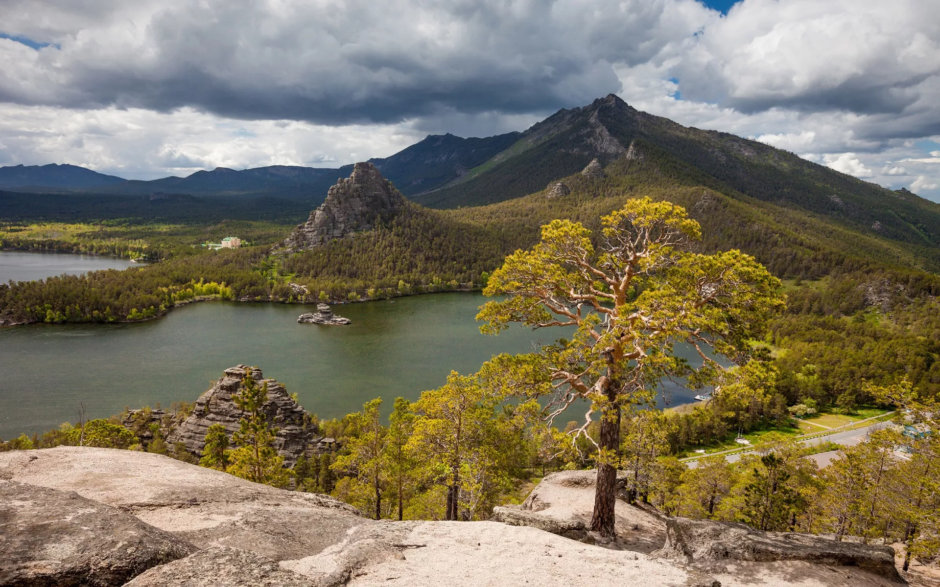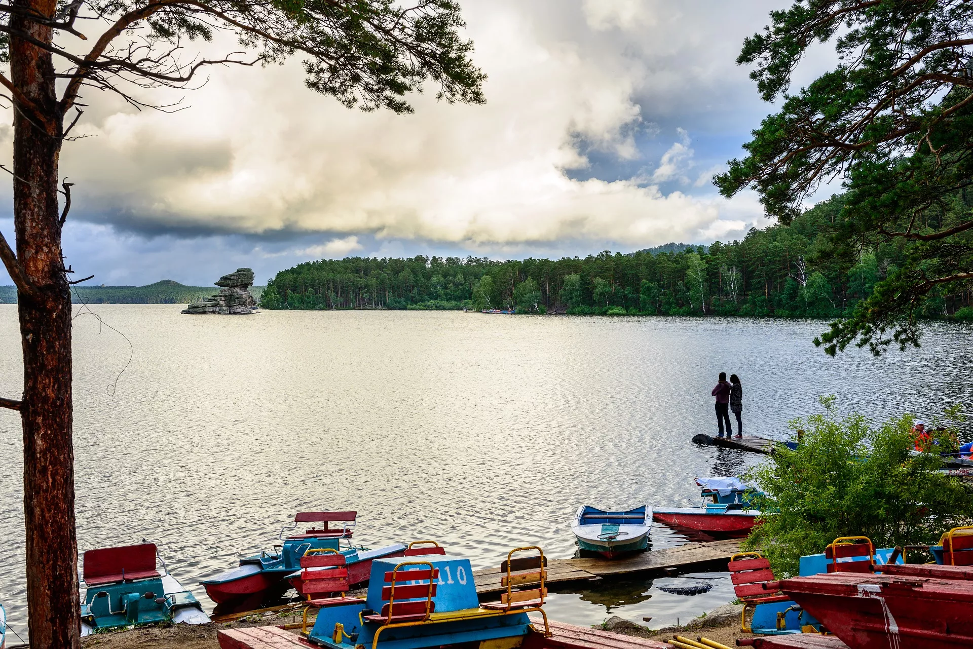 В окружении хвойного леса и гор озеро раскинулось на высоте 480 метров над уровнем моря.