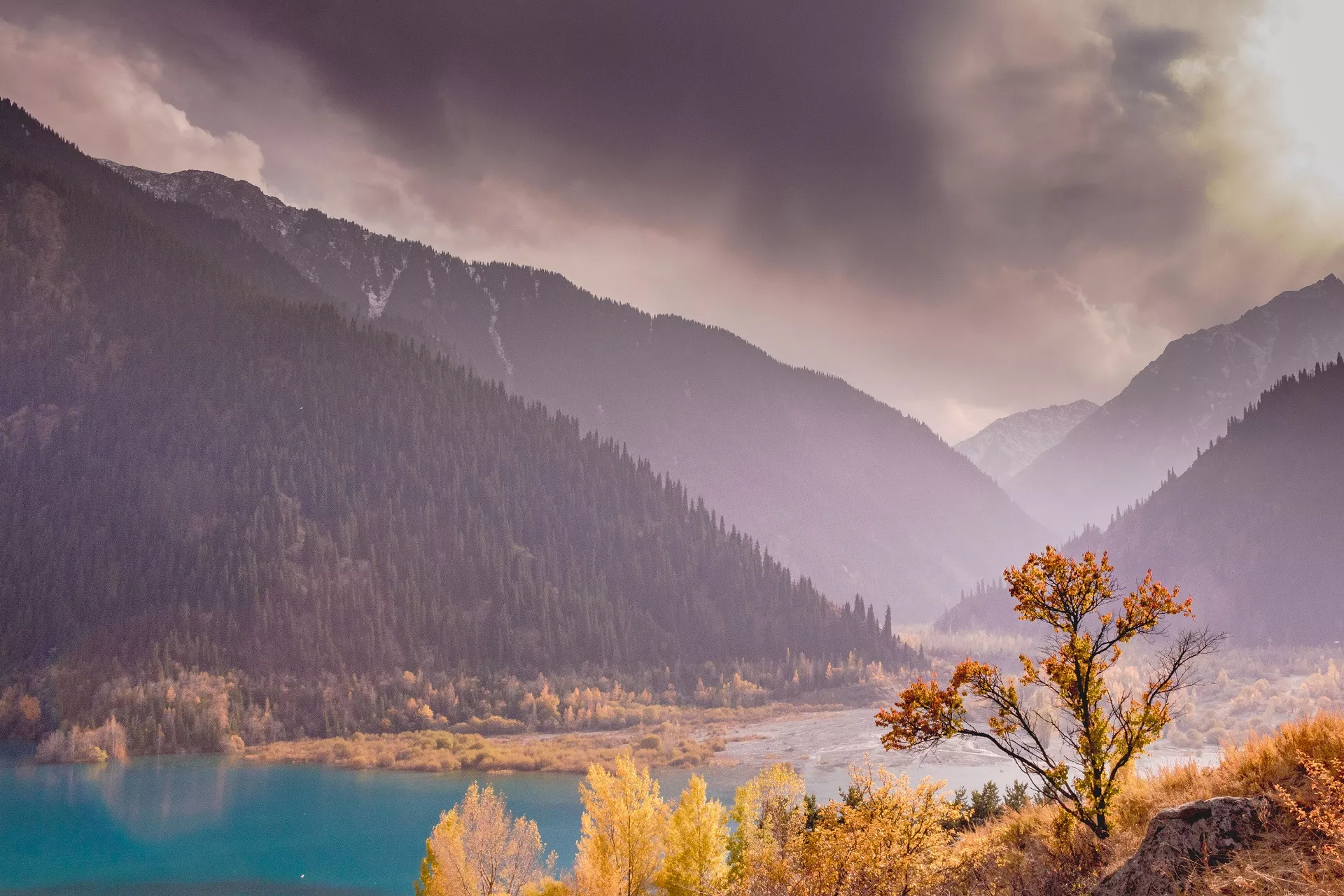 Это красочное озеро находится в 70 км от Алматы и расположено среди густого леса на высоте 1800 метров в Иссыкском ущелье Алатау.