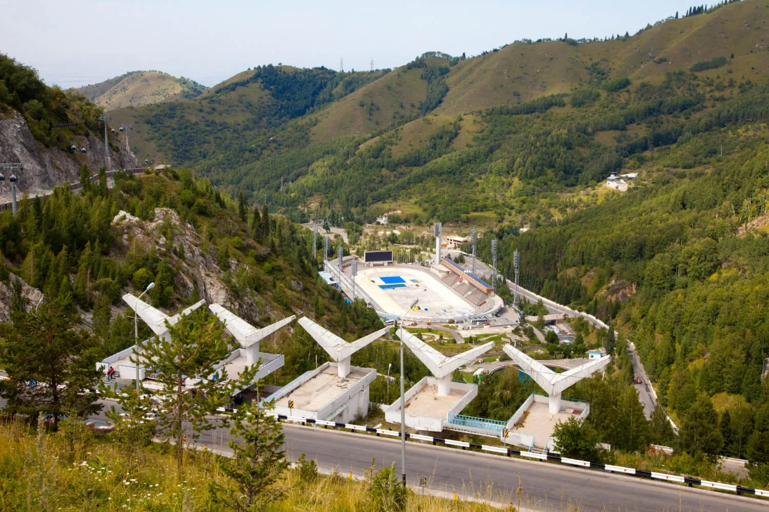 Алматы расположен у подножия Заилийского Алатау — части Северного Тянь-Шаня, где горы резко поднимаются над городом и достигают высоты более 4000 метров. Здесь всего за несколько минут можно перейти от городской среды к высокогорным ландшафтам с хвойными лесами, ледниками и панорамными вершинами. Одной из самых известных горных зон является район Шымбулака, расположенный выше 2200 метров над уровнем моря. Ещё выше, на высоте около 3200 метров, открываются альпийские виды на хребты и долины, окружающие Алматы. Внизу раскинулся город с широкими проспектами, парками и историческими районами. Такое сочетание природы и урбанистики делает Алматы одним из самых живописных городов Центральной Азии.